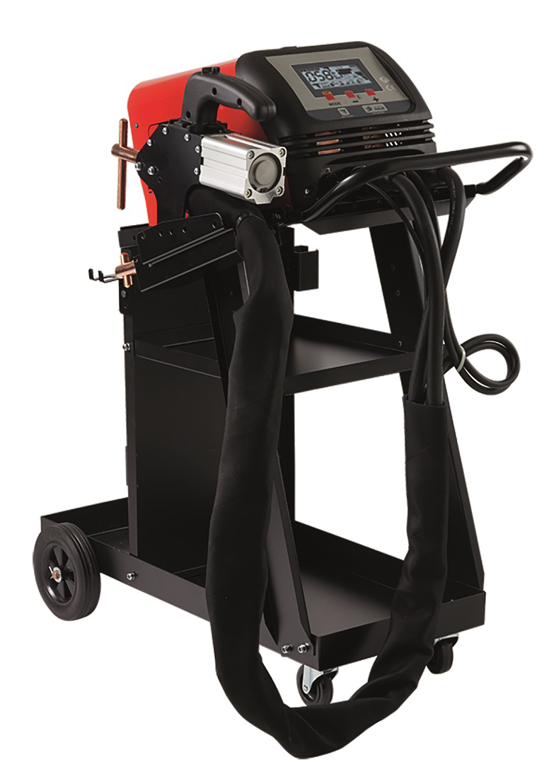 Elektronická mikroprocesorová multifunkční bodovací svářečka Digital Spotter 7000 Telwin s pulsním a stejnosměrným režimem. Jednostranné a oboustranné bodování, žíhání plechů, bodování šroubů, nýtů, hřebíků, podložek, kontaktů apod. Bodovací kleště ovládané a chlazené vzduchem.