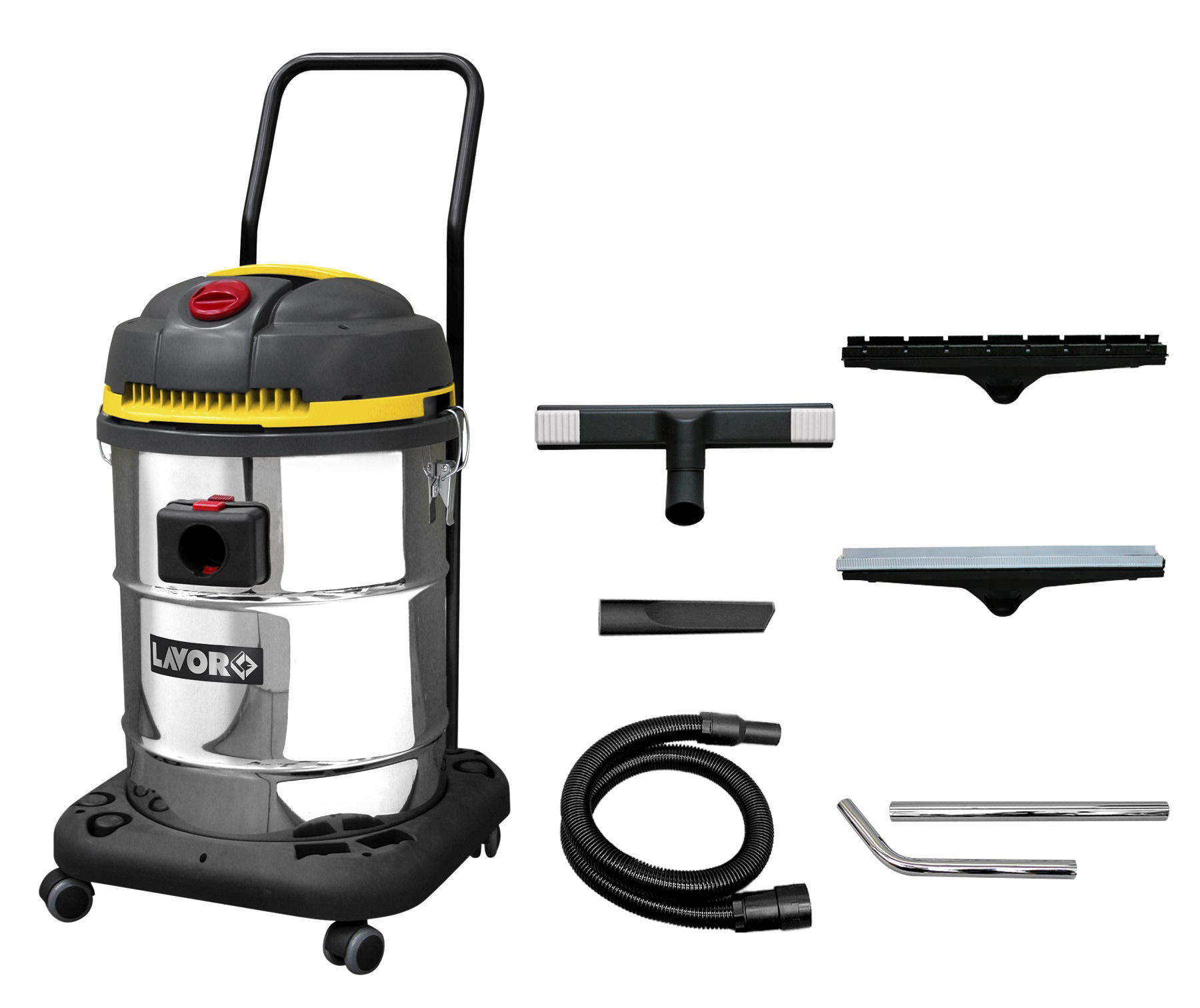 Dílenský průmyslový vysavač WD 255 XE Lavor s pomocnou zásuvkou pro suché a mokré vysávání, 2 motory 2x1400 W, automaticky spínaná zásuvka 230V/2000W, odpadní nádoba 55 lt, včetně příslušenství.