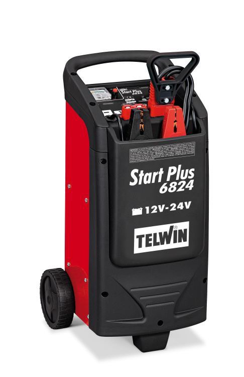 Bateriový startovací zdroj Start Plus 6824 Telwin, 12/24 V 2000/1000 A s vlastní baterií a vlastním nabíječem. Vhodný pro velké stroje, kamiony, traktory apod.