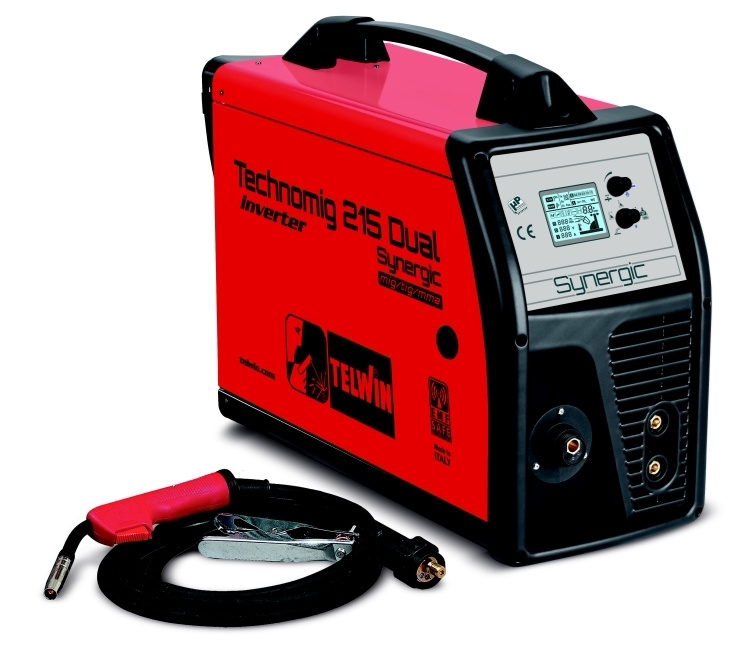 Svářečka CO2 - Svářecí invertor CO2 (MIG-MAG)/MMA/TIG Technomig 215 Dual Synergic Telwin, 20-220 A, 230 V microprocesorem řízený svářecí invertor CO2 MIG-MAG, pro sváření bez plynu i s plynem, TIG DC/LIFT, pro sváření obalenou elektrodou MMA. Profesionální stroj pro autoopravárenství a zámečnické provozy.